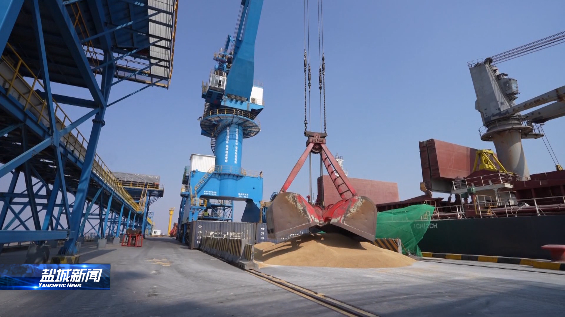 來到鹽城港大豐港區(qū)糧食碼頭,一艘裝載著澳大利亞大麥的貨船正在卸貨。接下來,還將有來自巴西裝載著6萬噸大豆的貨船排隊進(jìn)港。