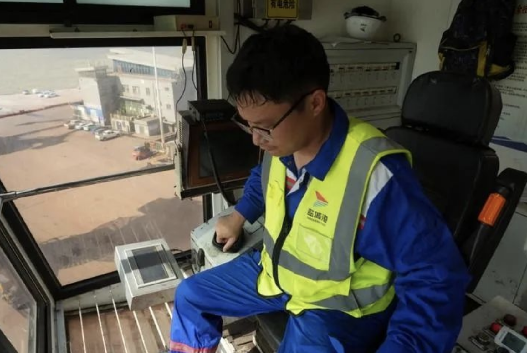 門機全名“門座起重機”,是一種旋轉(zhuǎn)臂架類有軌運行起重機,主要應(yīng)用于港口的貨物裝卸工作。作為長三角港口群的一員,大豐港區(qū)的碼頭上來往船只不斷,對于碼頭的卸貨效率有極高的要求,門機手的重要性不言而喻。