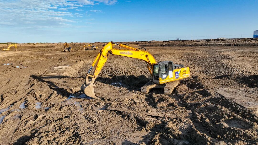 進行港池陸上開挖施工