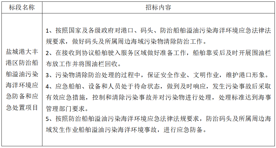 1、項目名稱:鹽城港大豐港區防治船舶溢油污染海洋環境應急防備和應急處置項目