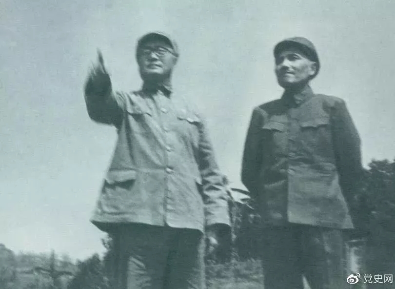 圖為劉伯承司令員和鄧小平政委指揮渡江準備工作。