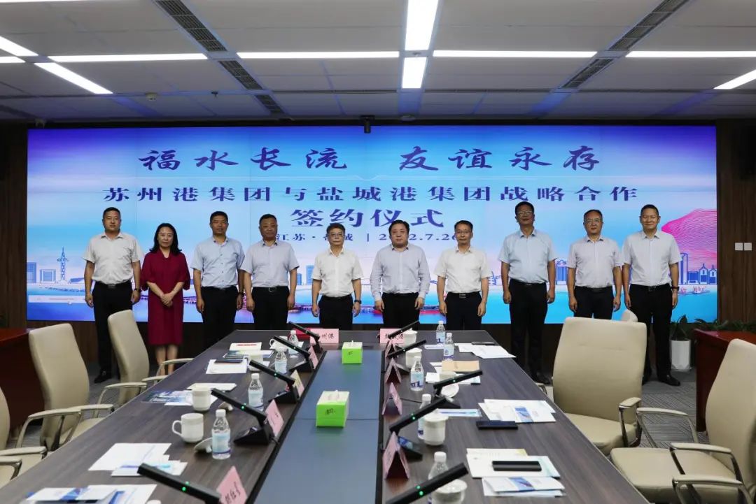 7月26日,蘇州港集團(tuán)與鹽城港集團(tuán)戰(zhàn)略合作簽約儀式成功舉行。蘇州港集團(tuán)黨委書記、董事長吳紅,集團(tuán)黨委書記、董事長、總經(jīng)理周正雄出席活動并簽約。蘇州港集團(tuán)總經(jīng)理毛雪強(qiáng),集團(tuán)黨委委員、紀(jì)委書記周旭東,集團(tuán)黨委委員、副總經(jīng)理夏立新、陳正華等參加。