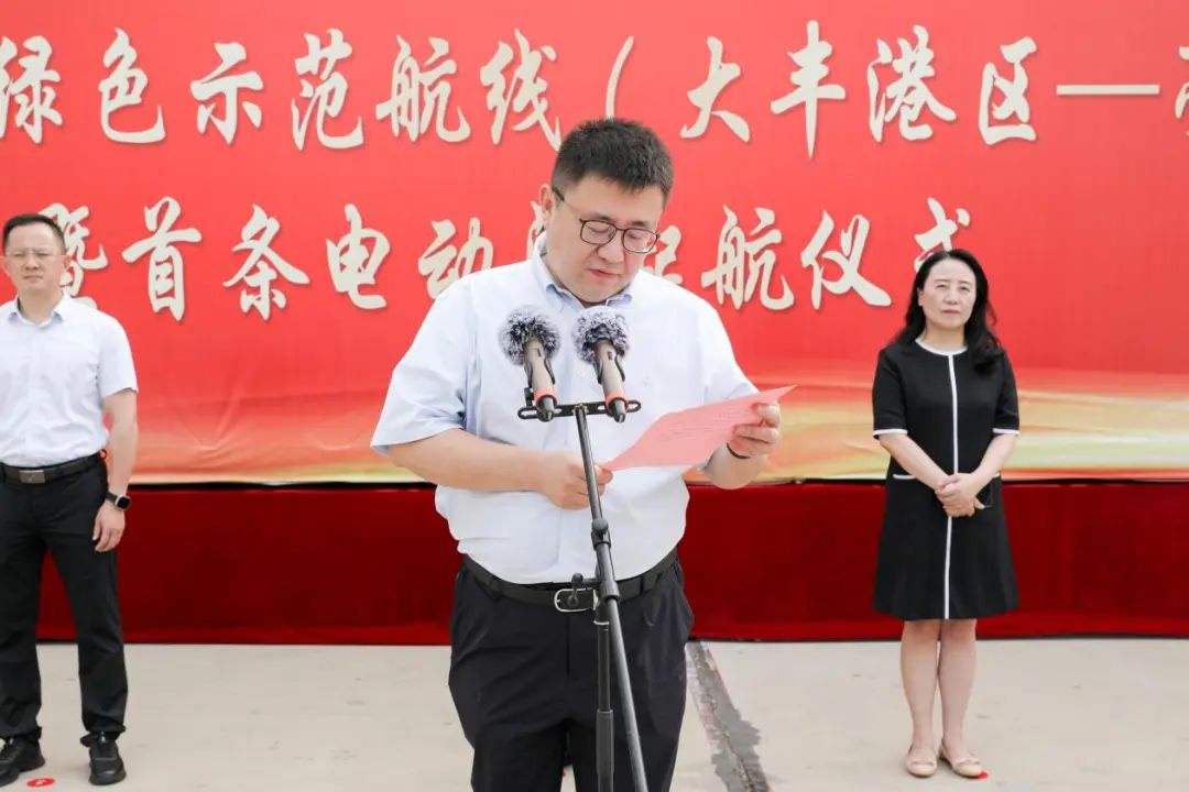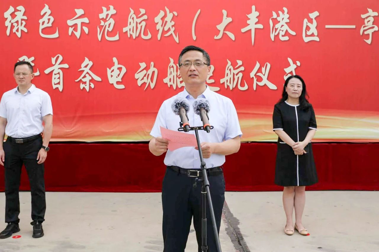 陸帥表示,綠色發展是高質量發展的底色,綠色示范航線的開通及電動船的啟用是落實集團關于構建綠色、生態、智慧、平安、美麗“五新示范港”的有力抓手,是鹽城港深入輻射淮河生態經濟帶、全力打造淮河生態經濟帶出海門戶的生動實踐,為實現河海聯運一體化發展提供了有力支撐,為落實“碳達峰、碳中和”等中長期戰略目標奠定了堅實基礎。集團全體干部職工要以今天的開航為新起點,發揚開拓創新“拓荒牛”精神,主動下好淮河戰略的“先手棋”“制勝棋”“長遠棋”,充分發揮江蘇獨特的水韻之美、水運之利,為腹地企業提供更加經濟、便捷、可靠的物流服務,積極策應綠色低碳發展新趨勢,全力在發展新質生產力進程中尋求新突破,接續奮斗、再立新功,奮力為鹽城勇當全省發展新質生產力重要陣地“碳路先鋒”作出更大貢獻。