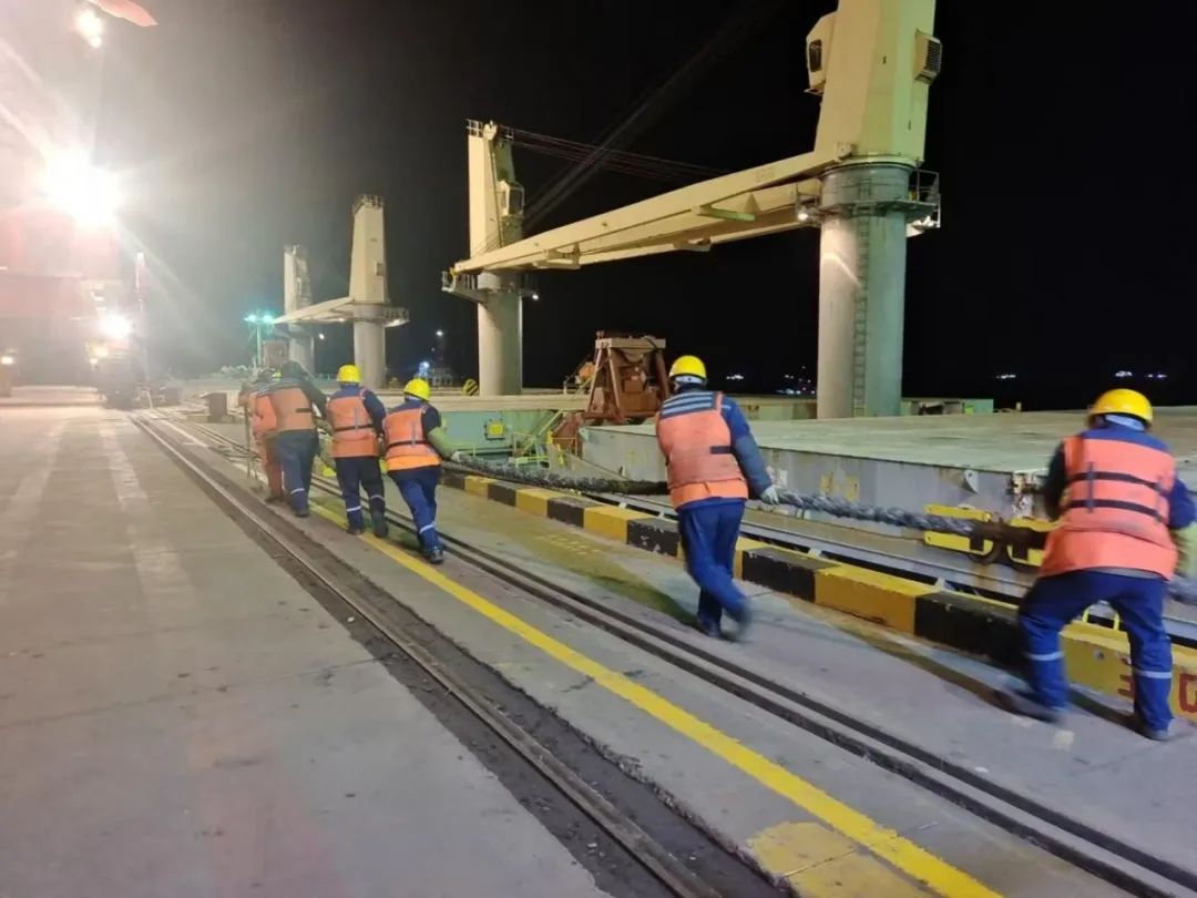 據(jù)悉,裝載近5萬噸鐵礦粉的“V.NOBLE”輪因航行途中受大風(fēng)影響導(dǎo)致船期緊張,該輪貨物在大豐港區(qū)完成卸載后需緊急奔赴下一站,裝載國家“一帶一路”重點(diǎn)項(xiàng)目物資出口至科威特。在得知客戶面臨的棘手問題后,大豐港區(qū)秉承“客戶為中心”的理念,迅速行動(dòng),主動(dòng)對(duì)接,提前了解貨物卸載屬性,規(guī)劃碼頭作業(yè)場(chǎng)地,時(shí)刻關(guān)注船舶動(dòng)態(tài)信息,制定科學(xué)卸船方案。船舶靠泊后,作業(yè)人員立即響應(yīng),迅速調(diào)配生產(chǎn)資源,四臺(tái)門機(jī)與四臺(tái)裝載機(jī)火力全開,經(jīng)過30小時(shí)的晝夜奮戰(zhàn),順利完成卸船任務(wù),比預(yù)計(jì)時(shí)間縮短了18小時(shí),并刷新大豐港區(qū)通用碼頭鐵礦單船作業(yè)歷史最高紀(jì)錄,不僅為客戶爭取了寶貴時(shí)間,也保障了國家“一帶一路”重點(diǎn)項(xiàng)目順利推進(jìn)。
