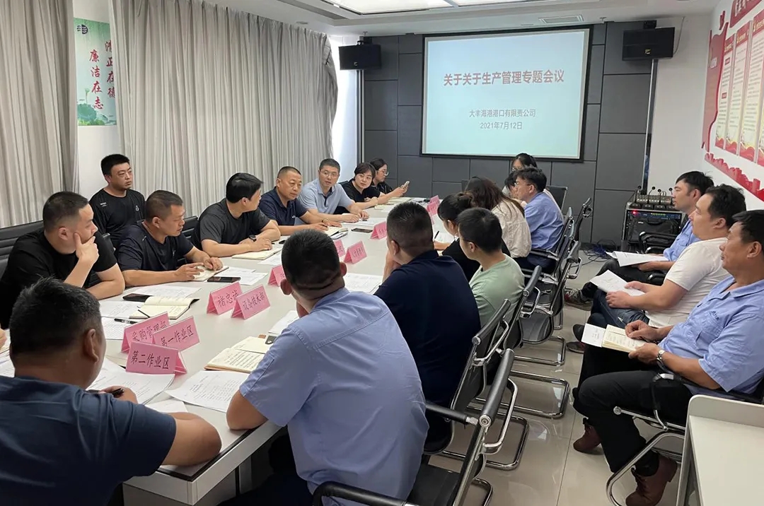 7月12日,大豐港區港口公司召開安全工作、生產管理、黨風廉政建設專題會議,公司領導班子、各部門負責人參加會議。