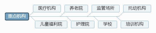 4.“重點(diǎn)機(jī)構(gòu)”:新冠肺炎疫情期間,容易暴發(fā)聚集性疫情的機(jī)構(gòu),包括醫(yī)療機(jī)構(gòu)、兒童福利院、養(yǎng)老院、護(hù)理院、監(jiān)管場所、學(xué)校、托幼機(jī)構(gòu)、培訓(xùn)機(jī)構(gòu)等。