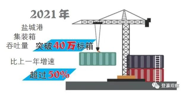 2021年,盡管受疫情影響,但鹽城港集裝箱吞吐量突破40萬標箱,比上一年增速超過50%,越來越多的貨物通過鹽城港進出。