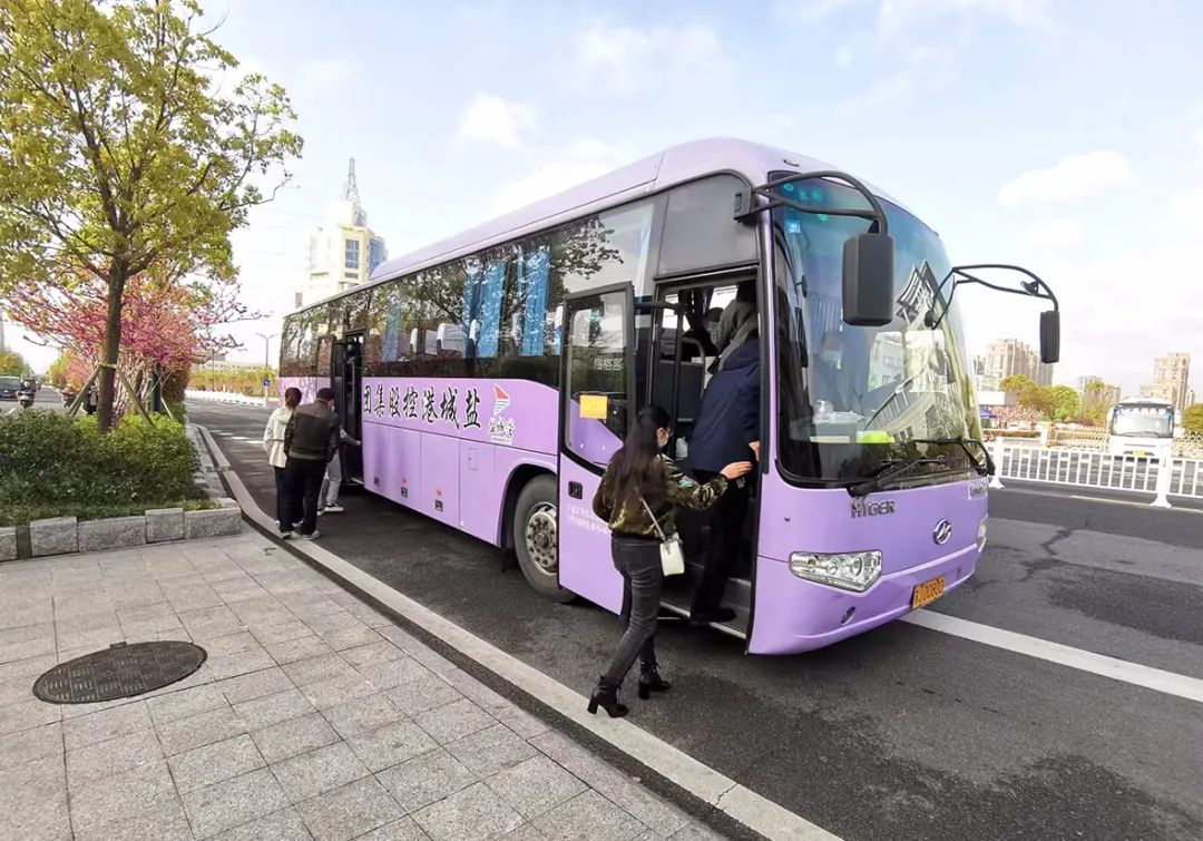 汽服公司的大巴準(zhǔn)時發(fā)車,保障通勤,測溫、驗碼、登記必不可少。