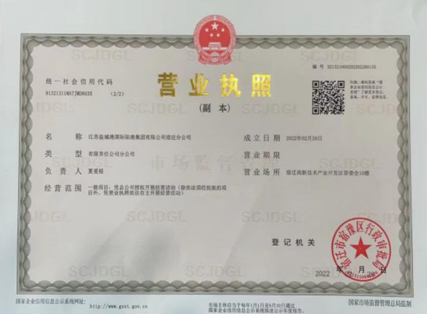 2月28日,江蘇鹽城港國(guó)際陸港集團(tuán)宿遷分公司成立;