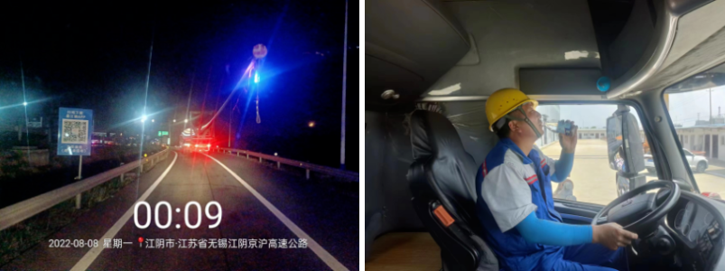 面對近期連續高溫天氣,車隊管理人員通過合理安排裝卸、運輸時間,避開高溫風險,利用早晨裝車、晚上發車、后半夜到達目的地的方式進行作業。作業人員抵達江陰后,為保證所運設備安全,車隊管理人員全部在車內休息。