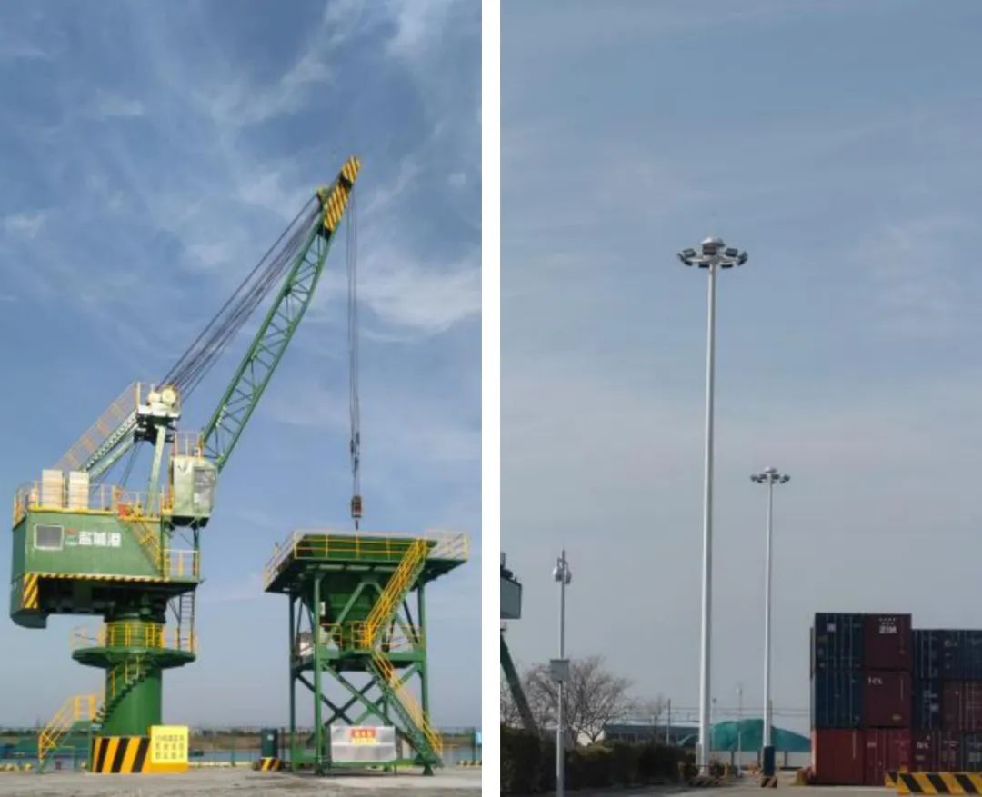 左圖:固定式起重機 右圖:高桿燈