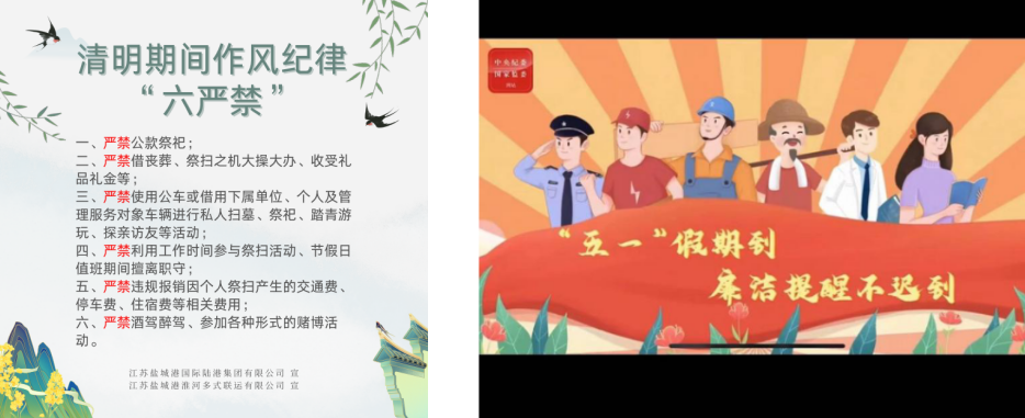 微信提醒送廉。在節(jié)假日前將嚴禁公車私用、嚴禁大操大辦、嚴禁收受禮品禮金等紀律要求設計制作成《節(jié)日期間作風紀律“六嚴禁”》海報,利用手機微信等平臺,發(fā)布中紀委節(jié)前廉潔提醒動畫,同時以短信形式為干部職工送上廉潔過節(jié)溫馨提示。一張海報、一個動畫、一條短信猶如一縷清風,通過“潤物無聲”的關懷與警醒,營造了風清氣正的節(jié)日氛圍。