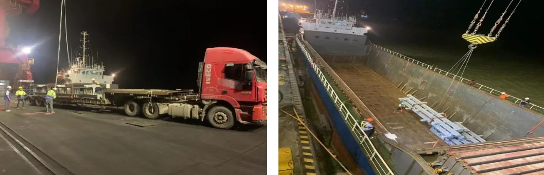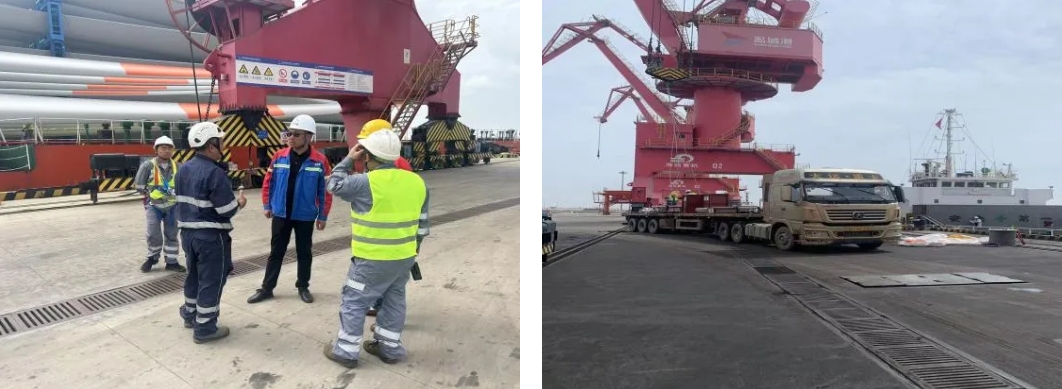 作業過程中,射陽港區選派經驗豐富、素質過硬的門機司機進行卸船作業,根據貨輪進港前期雙方制定的裝貨方案與綁扎方案,全力攻堅推進裝卸作業圓滿完成?!凹涌焖俣?!確保安全!我們盡量在30個小時內完成這批貨物的裝卸!”他的聲音再次響起,不斷激勵著碼頭全體作業人員。