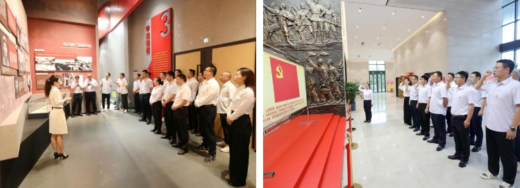 “我志愿加入中國共產(chǎn)黨,擁護黨的綱領(lǐng),遵守黨的章程,履行黨員義務(wù),執(zhí)行黨的決定,嚴(yán)守黨的紀(jì)律……”6月29日,港灣建設(shè)集團與天津深基公司鹽城項目黨支部的黨員共同佩戴黨徽、舉起右拳,在鹽都革命陳列館內(nèi)重溫入黨誓詞,用洪亮的聲音、激昂的語氣,表達(dá)了牢記初心使命,踐行為共產(chǎn)主義事業(yè)奮斗終身的決心和永葆共產(chǎn)黨員政治本色的信心。