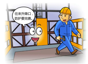 樓梯口、電梯口、預(yù)留洞口、通道口和地坑口必須有防護(hù)設(shè)施,夜間設(shè)紅燈示警。