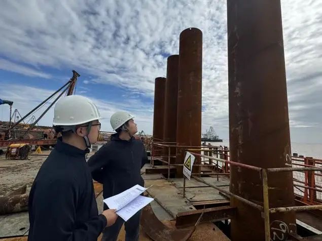 從項目開工伊始,投資發展部一直高度重視安全工作,從安全教育到體系的完善,每一步都無比慎重。面對水面陸域綜合體施工的新挑戰,管理組成員輪流值守,邊干邊學,邊學邊干,小到安全帶掛點是否規范,大到打樁架搭設是否合理,絲毫不敢有所松懈?!澳闾崂群?,我拿旗指揮”成了工地一道獨特的風景。