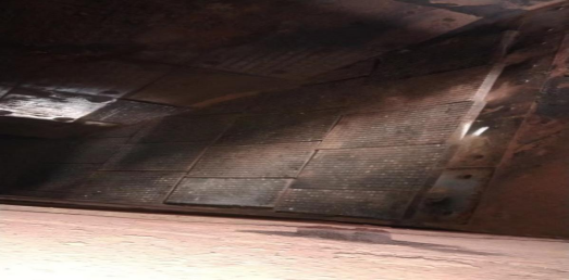 碼頭輸送線料斗作業(yè)時,由于貨物流量大、輸送時間長等原因,導致襯板磨損嚴重,經(jīng)常造成堵料現(xiàn)象,必須停機安排人工進行搶修,給生產(chǎn)效率產(chǎn)生一定程度的影響。