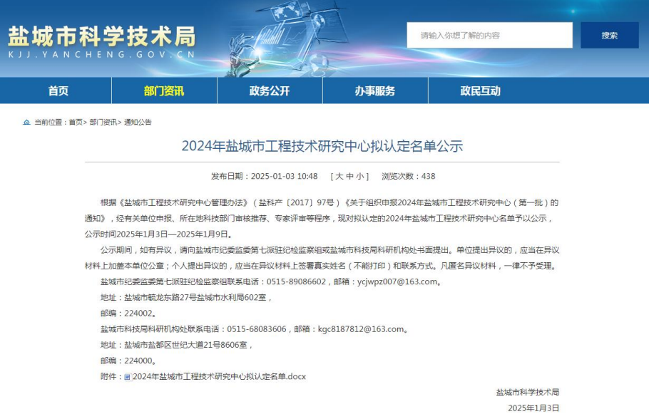 近日,鹽城市科學技術局發布了《關于2024年鹽城市工程技術研究中心認定名單》,其中科技集團成功入選,被認定為“鹽城市智慧港口智能監管系統工程技術研究中心”。這一榮譽標志著科技集團在智慧創新領域上又邁出了堅實的步伐。
