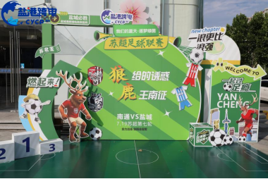還未踏入寶龍店,蘇超足球聯賽的氛圍已撲面而來——門店外,“狼的誘惑”“鹿王南征”等賽事主題美陳驚艷亮相,南通VS鹽城的對戰張力直接拉滿。足球、球員卡通形象與創意標語巧妙融合,提前為球迷打造打卡勝地,賽事未開,打卡熱情已擋不住!