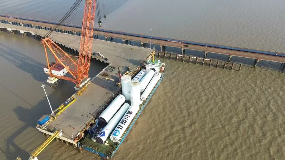 近日,隨著最后一件長31.6米、直徑6.6米、重146.3噸的風電塔筒穩(wěn)穩(wěn)落在“云舟之星”輪甲板上,標志著智慧港口公司散貨碼頭分公司創(chuàng)新的雙套風電塔筒裝船工藝成功應用實踐。