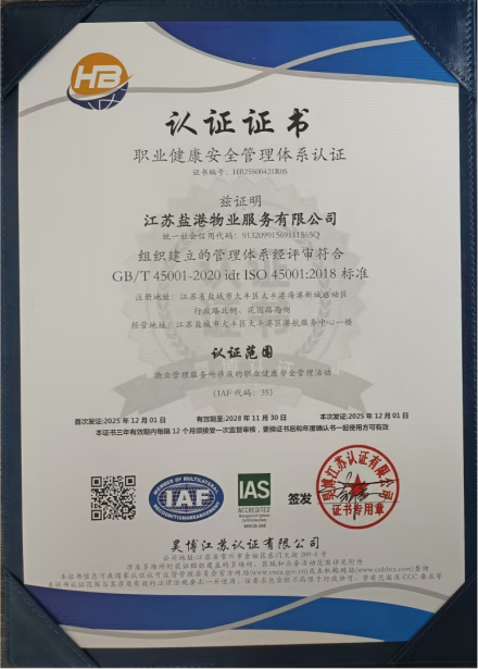 作為鹽城港集團的物業管理企業,鹽港物業始終秉持“客戶至上、精益求精、責任擔當” 的核心價值觀,專注于為綜合體辦公樓、住宅小區等各類物業項目提供全方位、高品質的物業服務。此次認證過程中,審核機構依據 ISO 相關國際標準,對公司的管理體系進行了全流程、多維度的嚴苛評審,涵蓋制度建設、流程執行、風險管控、服務質量、環境治理、員工權益保障、社會責任履行等多個關鍵環節。通過查閱資料、現場核查、人員訪談等多種方式的全面檢驗,鹽港物業的管理體系因其完整性、合規性、有效性得到了審核專家的高度認可,最終順利通過全部認證。