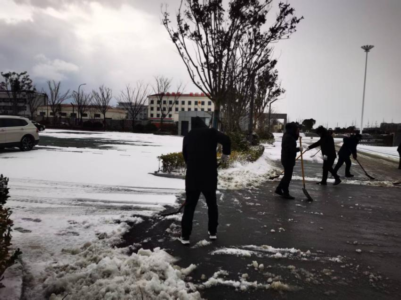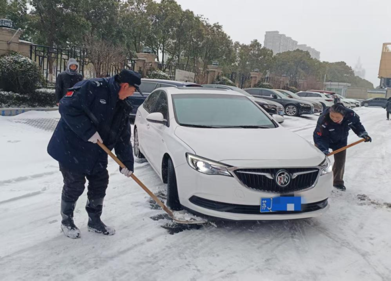 持續(xù)雨雪冰凍天氣,氣溫驟降至零下,道路積雪結(jié)冰給群眾出行和校園安全帶來(lái)嚴(yán)峻考驗(yàn)。鹽港物業(yè)第一時(shí)間響應(yīng),在居民小區(qū),工作人員頂風(fēng)冒寒,手持鐵鍬、掃帚在晨光熹微中集結(jié),分工協(xié)作清掃樓門通道、地下車庫(kù)坡道等關(guān)鍵區(qū)域。物業(yè)客服、保潔部門的女員工組成“巾幗除雪隊(duì)”,清掃積雪后及時(shí)撒布融雪鹽,用“巾幗不讓須眉”的擔(dān)當(dāng)守護(hù)每一位業(yè)主的出行安全。面對(duì)業(yè)主車輛打滑被困的突發(fā)狀況,工作人員火速上前,清掃冰雪、指揮調(diào)度,默契配合幫助車輛成功脫困,用及時(shí)援手傳遞服務(wù)溫度。