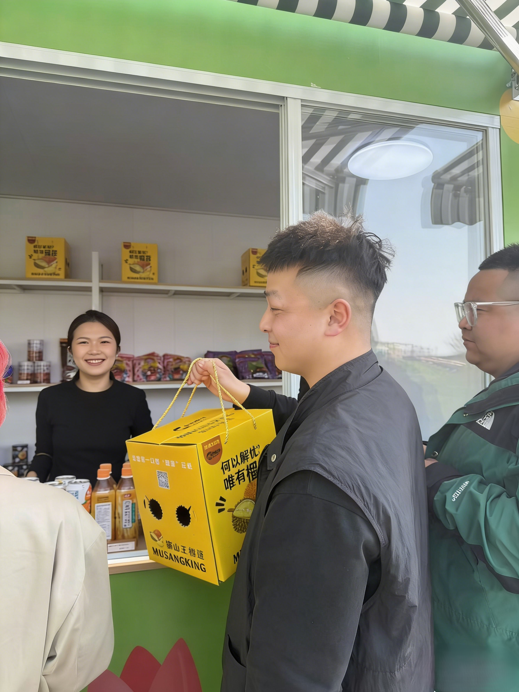 展銷會現場,多款進口商品整齊陳列,涵蓋美妝個護、休閑零食、特色酒水等品類。其中,進口貓山王榴蓮成為當之無愧的明星產品——金黃飽滿的果肉香氣濃郁,吸引眾多游客駐足詢問、挑選購買,展位前人氣持續高漲。