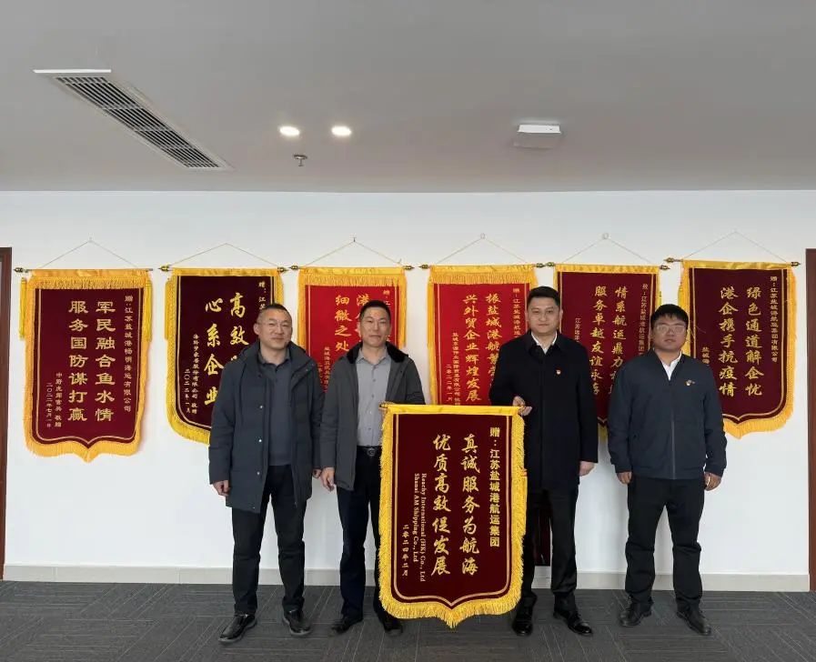 3月11日,香港汭灃航運有限公司、上海禛航船務有限公司代表送來了寫有“真誠服務為航海,優質高效促發展”“兩在兩同建新功 真心為企情誼濃”字樣的錦旗,對鹽城港航運集團、智慧港口公司長期以來提供的優質高效的服務表達感謝之情。